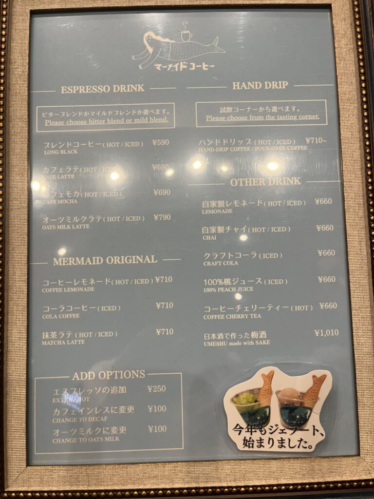 「マーメイドコーヒーロースターズ」のメニューをご紹介します。
