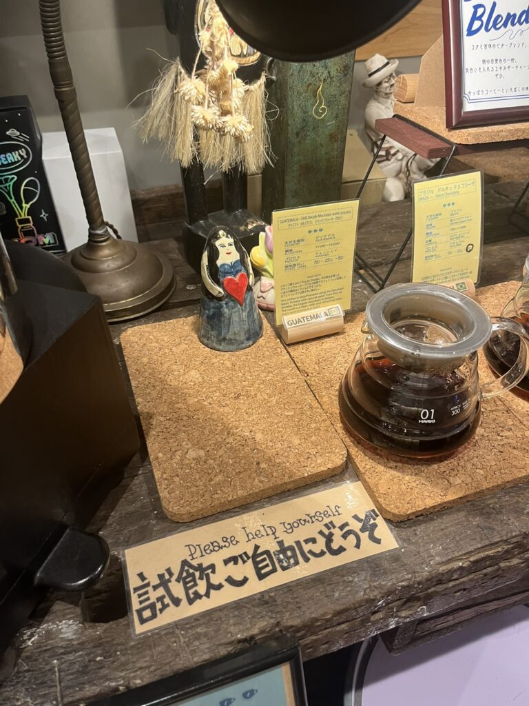 待っている間にコーヒーの試飲をすることができました。注文前にどんなコーヒーを頼むか考えられて嬉しいですね。