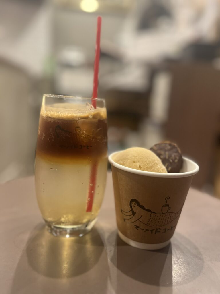 マスカットコーヒーソーダとジェラート(ジャスミンライチ)です。