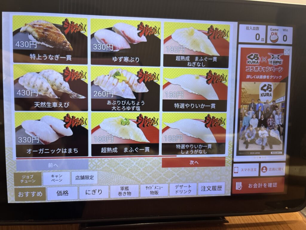 一押しメニューは下記のメニューでくら寿司の机の上に置いてありました。