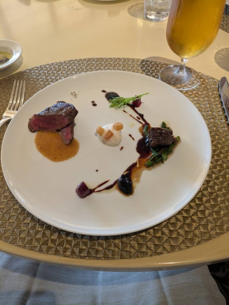 もうひとつはこちらの牛フィレ肉のビステッカ ペポーゾ ヴィンコットソース 黒ニンニクとエシャロットのピュレです。