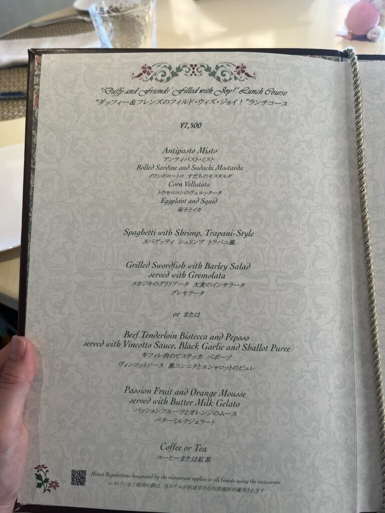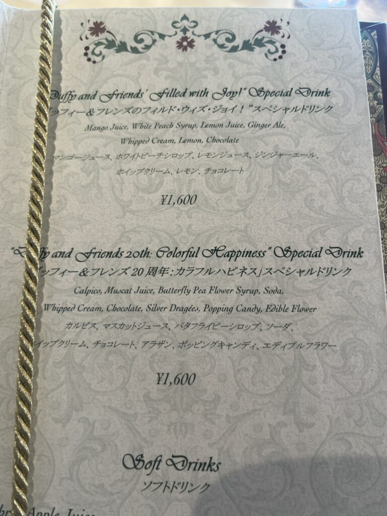期間限定のダッフィー&フレンズのスペシャルメニュー「フィルド・ウィズ・ジョイ!」のコースを選択しました。